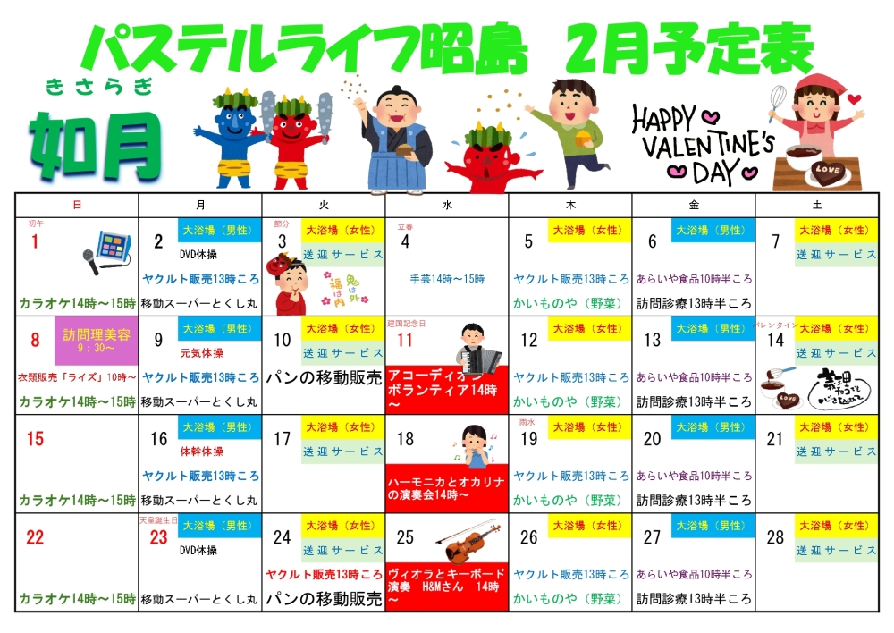 そんなご不安を吹き飛ばす、当住宅の**「2月の月間予定表」**を公開いたします!