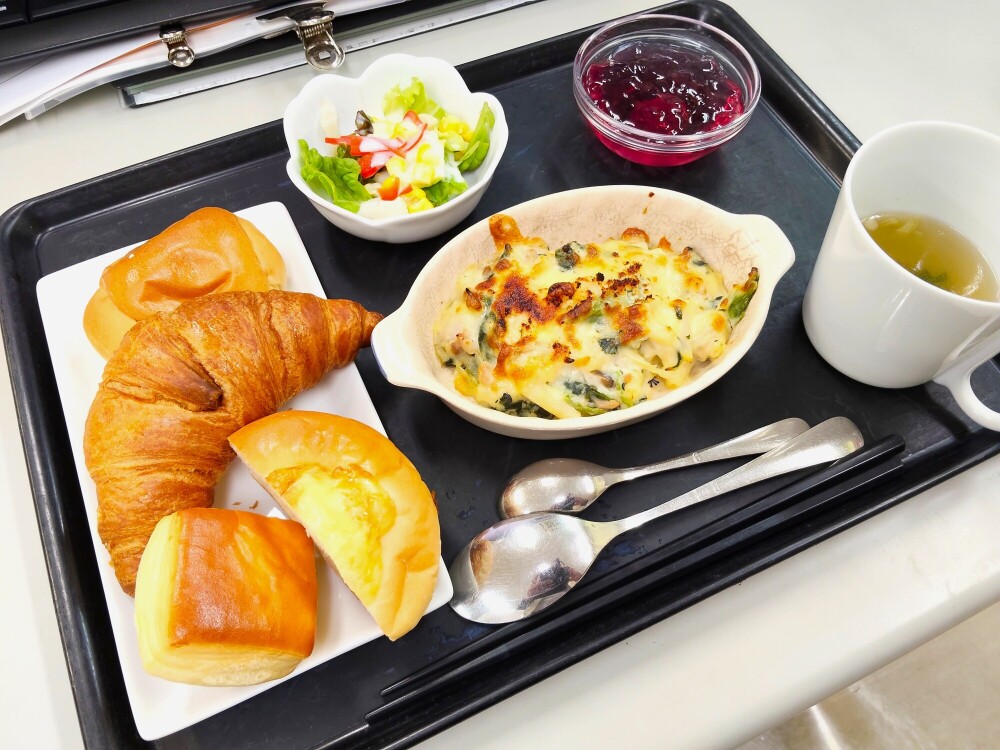 本日のメインは、厨房でふっくらと焼き上げた**「自慢の焼き立てパン」**です!