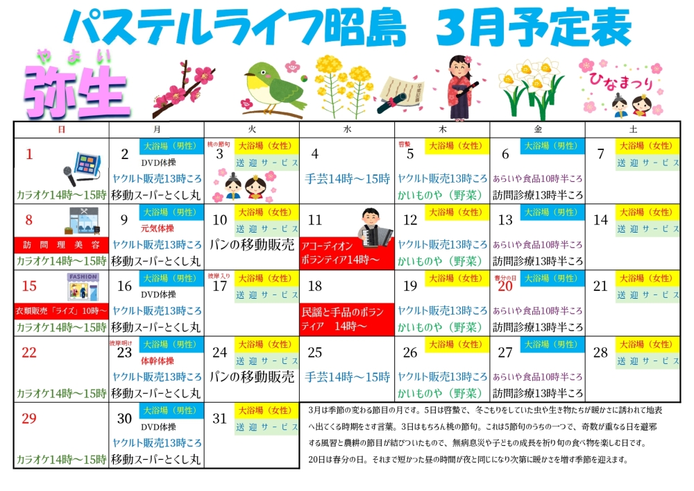 そんなご不安を吹き飛ばす、当住宅の**「3月の月間予定表」**を公開いたします!