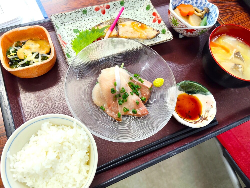 お膳が運ばれると、「わあ、豪華ね!」「お刺身がピカピカしてる!」と歓声が上がりました。脂の乗ったお刺身と、ふっくら焼き上げた照り焼き。同じ食材でも調理法によって変わる美味しさに、皆さま箸が止まらないご様子でした。😊