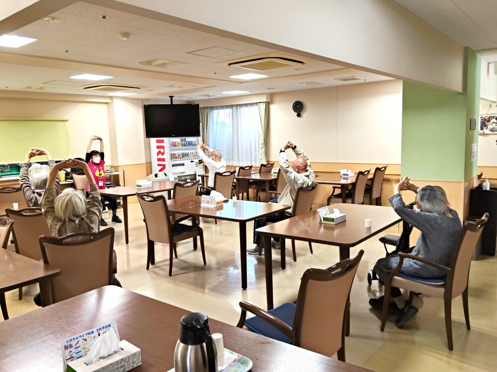 3月10日は、外部から専門の講師をお招きし、入居者様が心待ちにされていた**「元気体操」**を開催しました。プロの先生による明るい掛け声に合わせて、ダイニングがパッと華やぐひとときとなりました。✨.jpg)