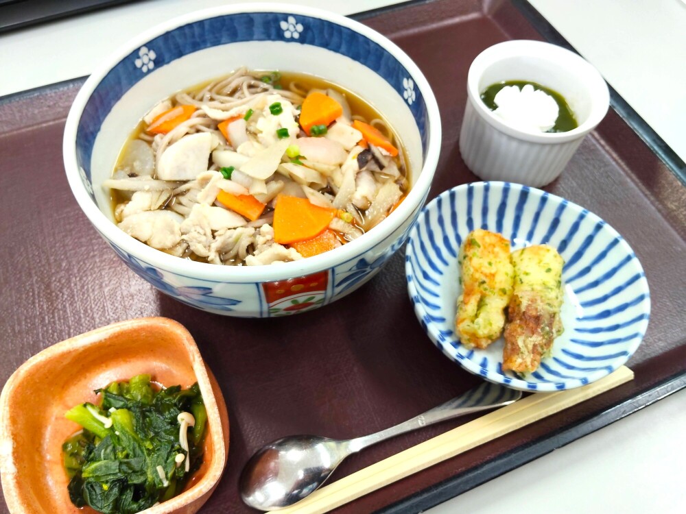 けんちんそば:根菜の旨味が溶け出した温かいお出汁が、体に染み渡ります。🥕🥔