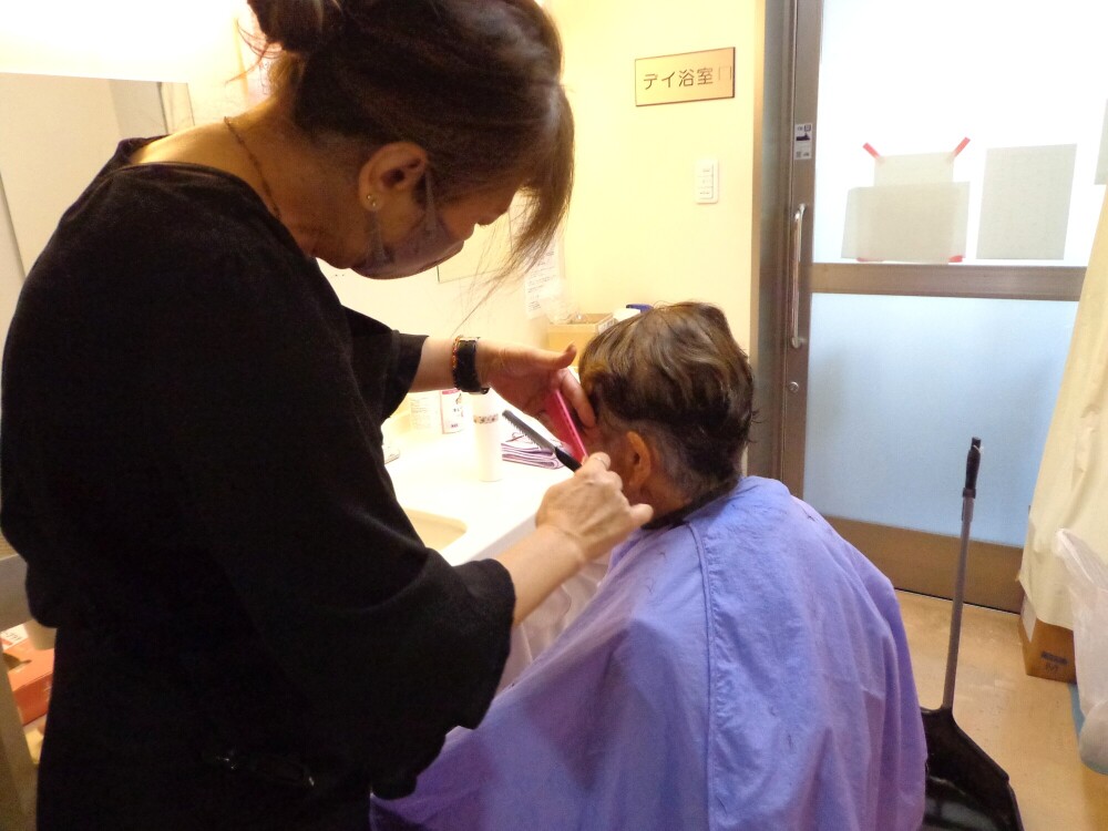 当住宅では、月に一度、プロの美容師・理容師さんに来ていただいています。