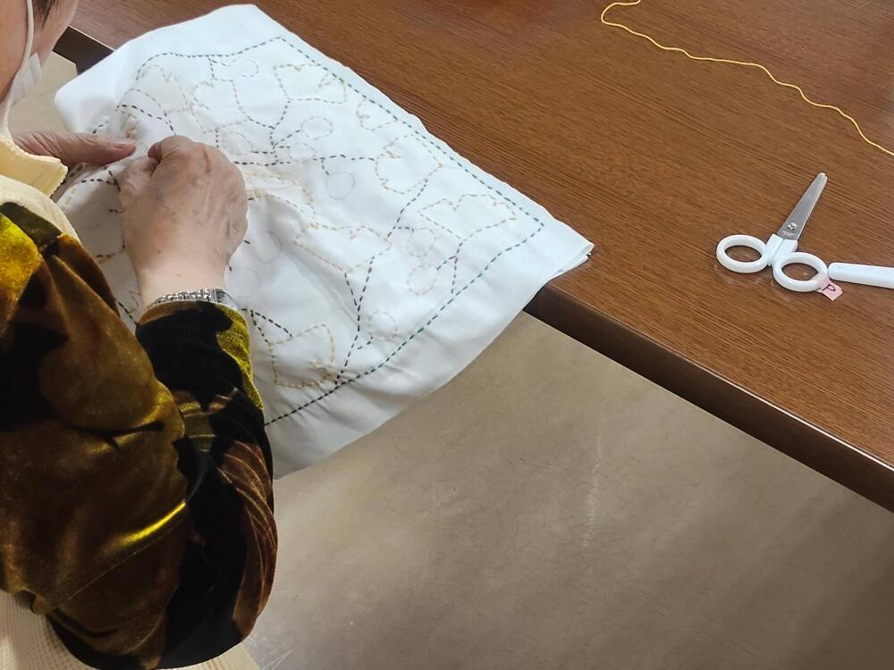 毎週行っている手芸の活動ですが、実は、**「楽しみながら行うリハビリ」**として非常に優れた効果があります。